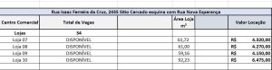 Aluguel + IPTU e Condomínio: de acordo com o tamanho da loja ( De R$ 75,00 a 150,00) valor médio.
